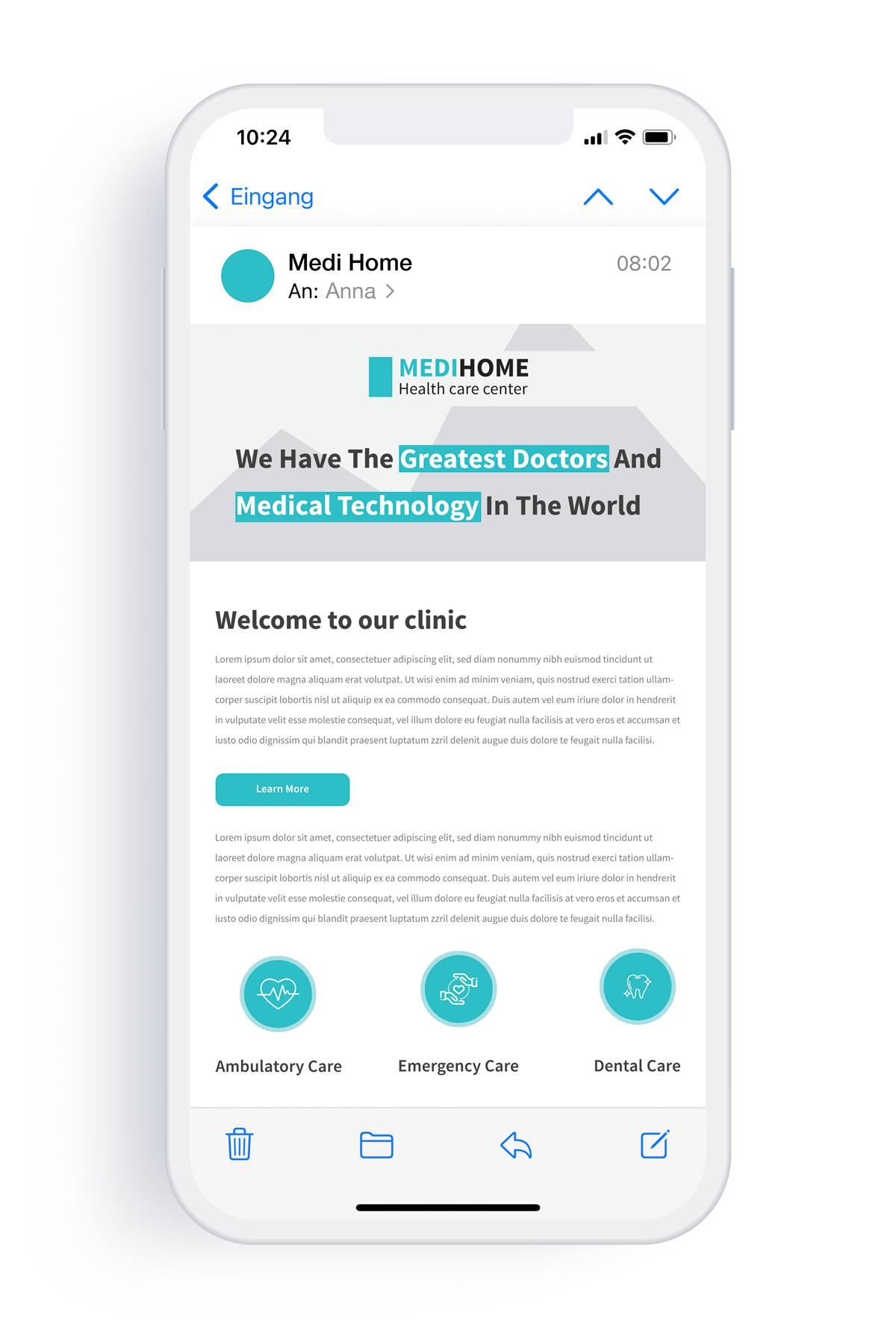 Damit Ihre Newsletter eine maximale Anzahl an Empfängern erreicht, arbeiten wir mit professionellen Anbietern von Newsletter-Tools zusammen, über welche nicht nur die Erstellung sondern auch der Versand erfolgt. Diese seriösen und am Markt bekannten Anbieter verfügen über das Whitelisting bei allen großen E-Mail Anbietern. Das bedeutet, dass Ihre Newsletter nicht als Spam deklariert sondern dem Empfänger in sein reguläres Postfach geliefert werden. Somit haben Sie auf diesem Weg die Möglichkeit, deutlich mehr potentielle Kunden zu erreichen und eine höhere Öffnungsrate, eine höhere Klickrate und somit auch eine höhere Conversionrate zu erzielen.