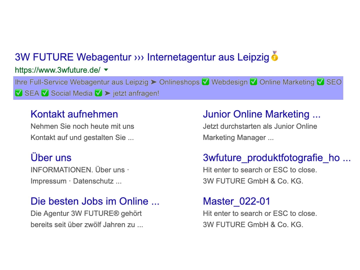 Das Snippet sollte prägnant sein. Der Kunde muss genau verstehen, um was es bei mir geht und ihn im Idealfall triggern. Je nach CMS kann das Snippet schnell und einfach für die jeweilige Seite geändert werden.