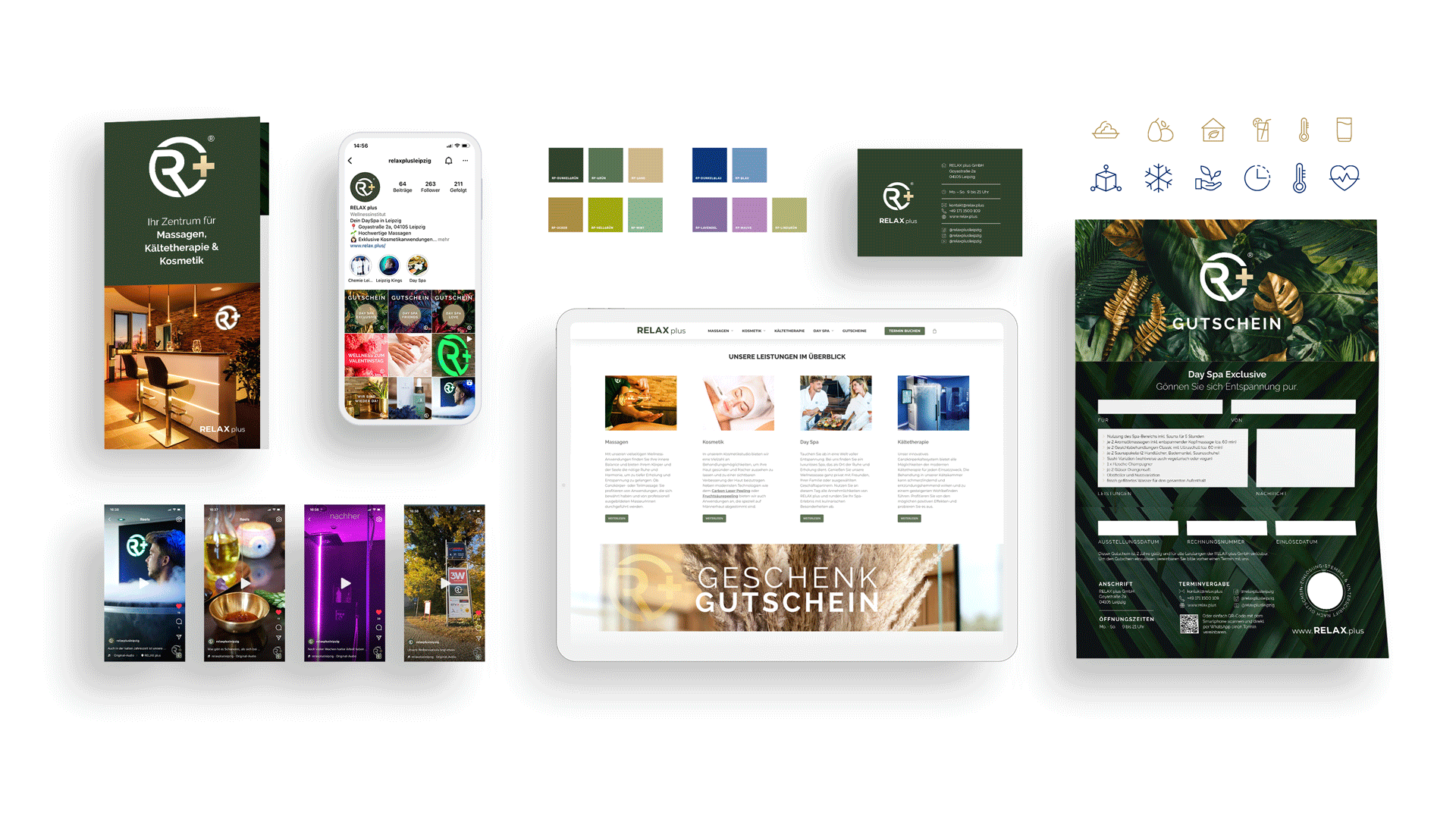 Für das Wellness-Studio RELAX plus haben wir von der Gründung an das komplette Corporate Design inkl. Printausstattung entwickelt, sowie Website und Onlineshop erstellt. Über Social Media begleiten wir die tägliche Arbeit und bringen mit gezielten Online Marketing Kampagnen die einzelnen Wellness-Angebote nach vorn.