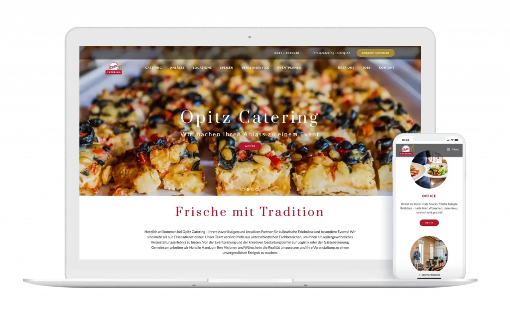 Die Leipziger Catering Agentur hat von uns nicht nur einen komplett neuen Internetauftritt bekommen, sondern wird auch in der weiterführenden Betreuung mit umfangreichen Online Marketing Maßnahmen unterstützt. Zudem begleiten wir Opitz Catering im Ausbau weiterer Geschäftsfelder und laufenden Instore-Kampagnen.